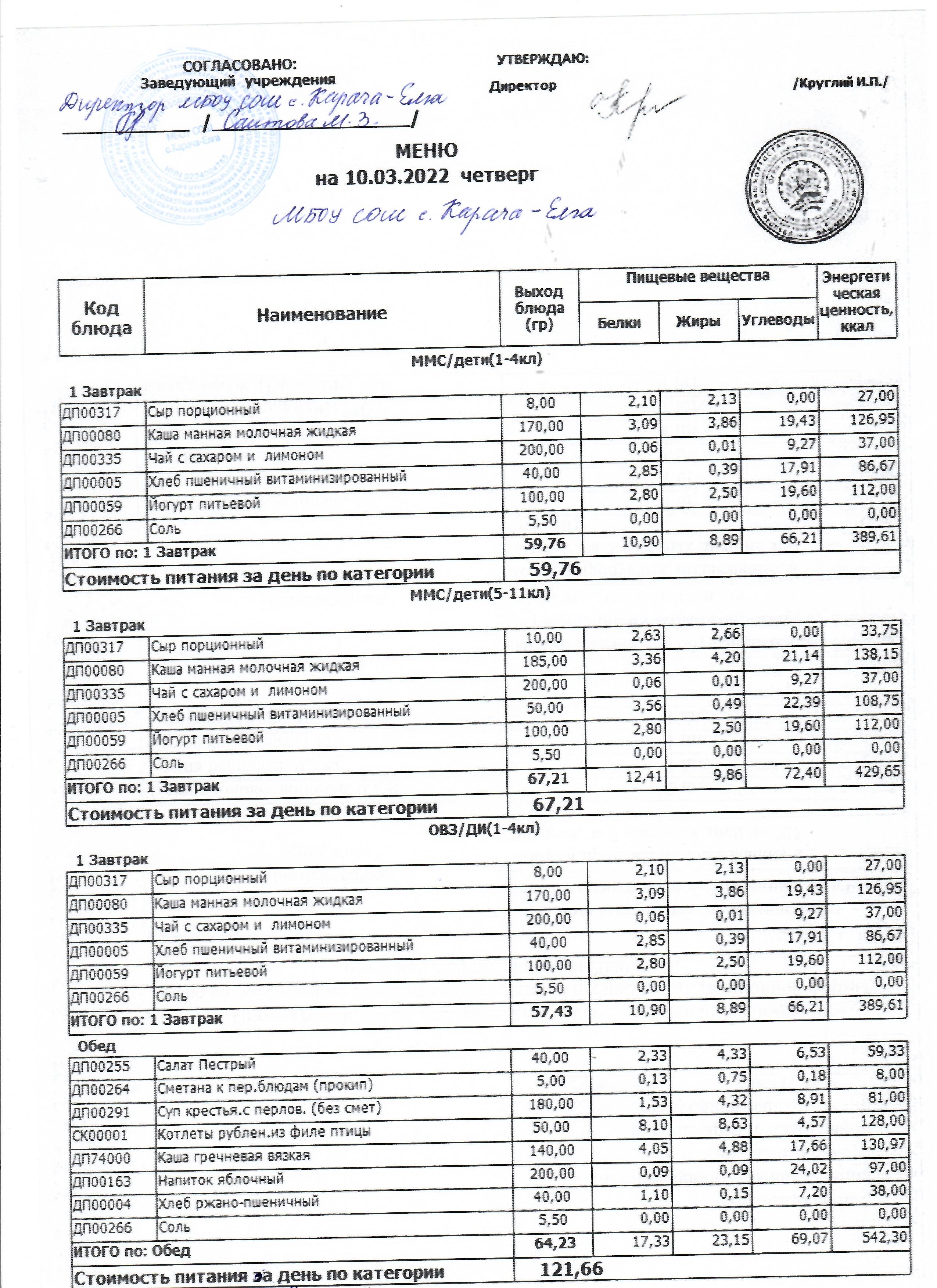 (меню на 10.03.2022 г)