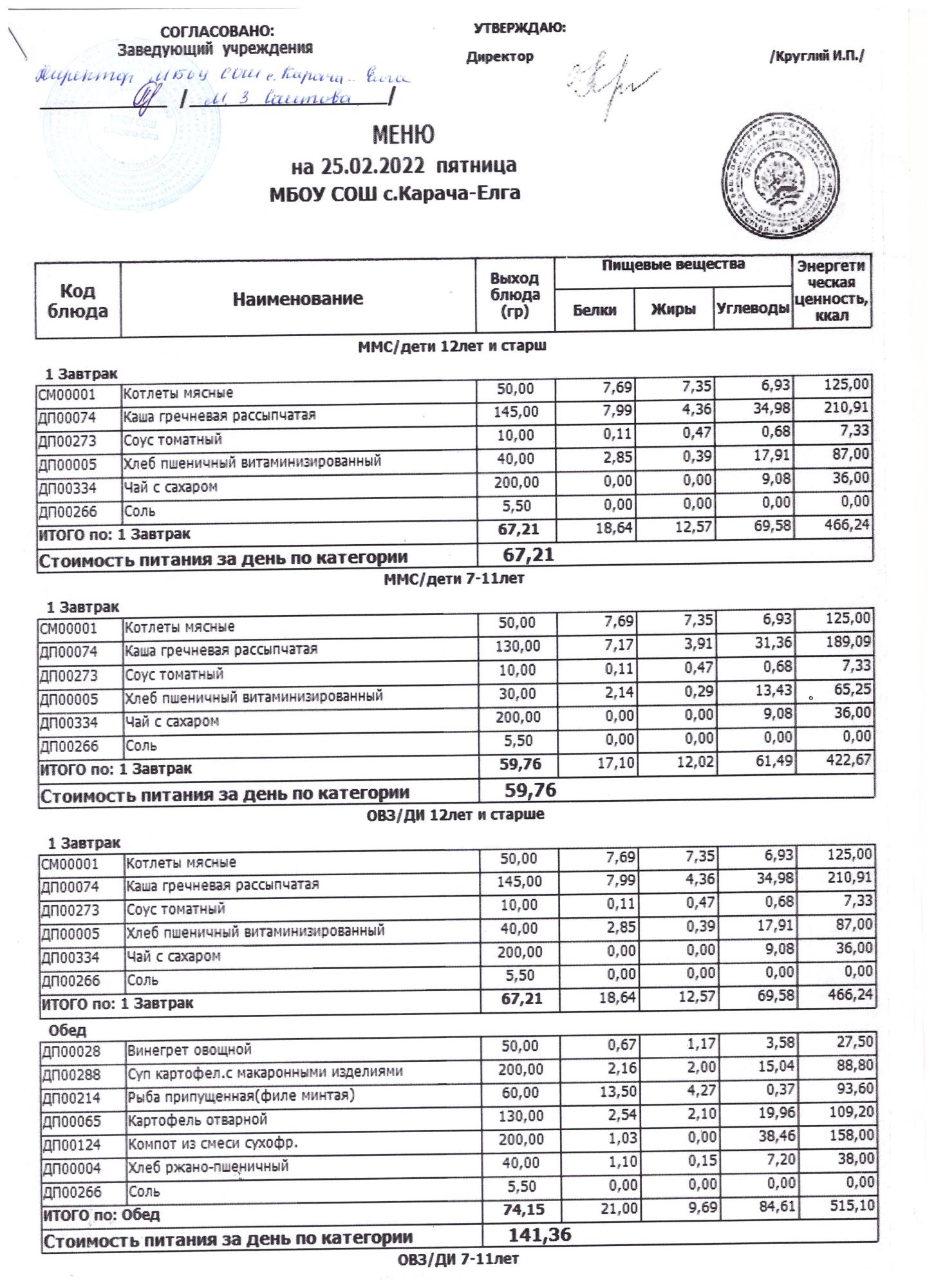 (меню на 25.02.2022 г)