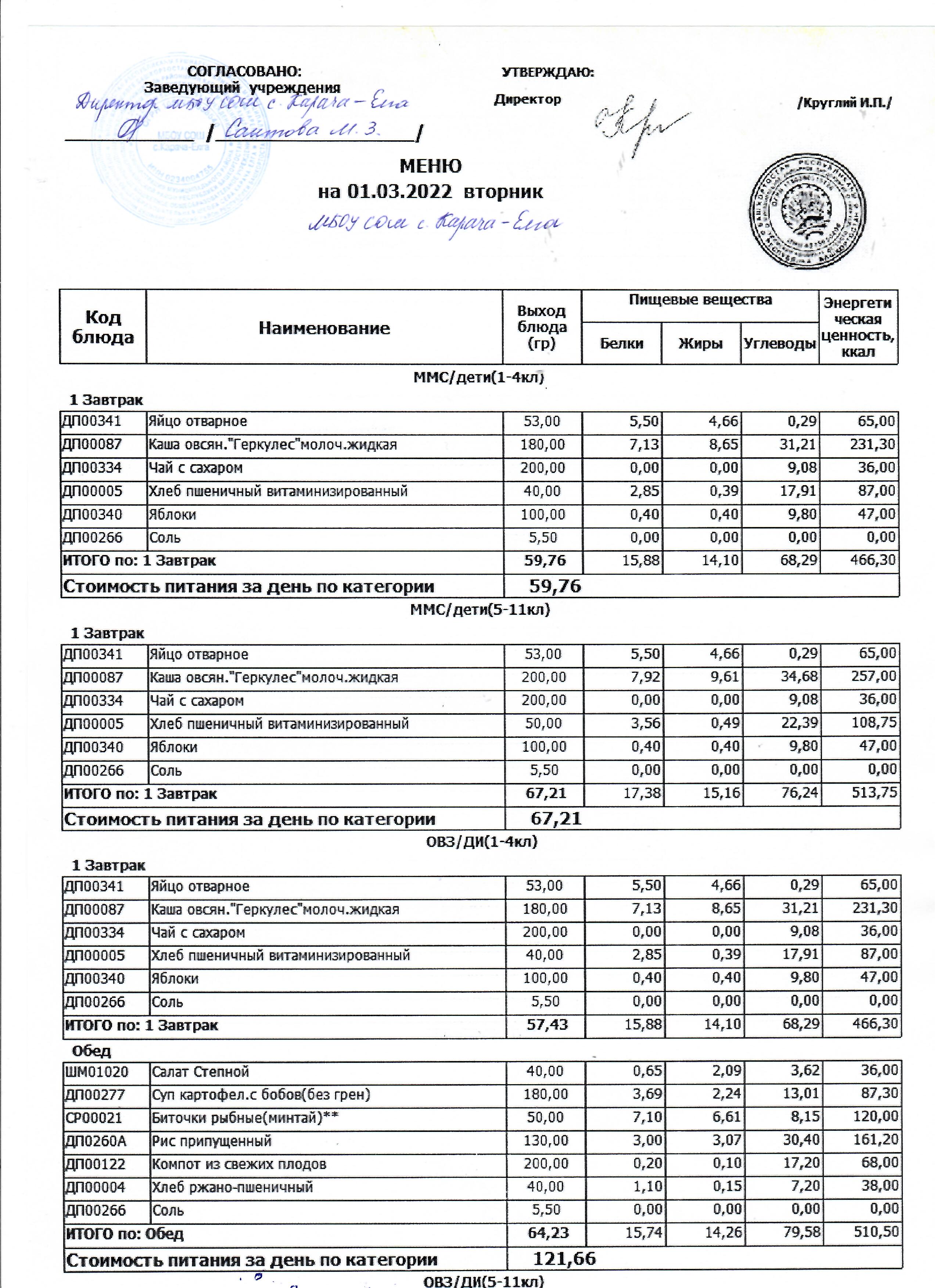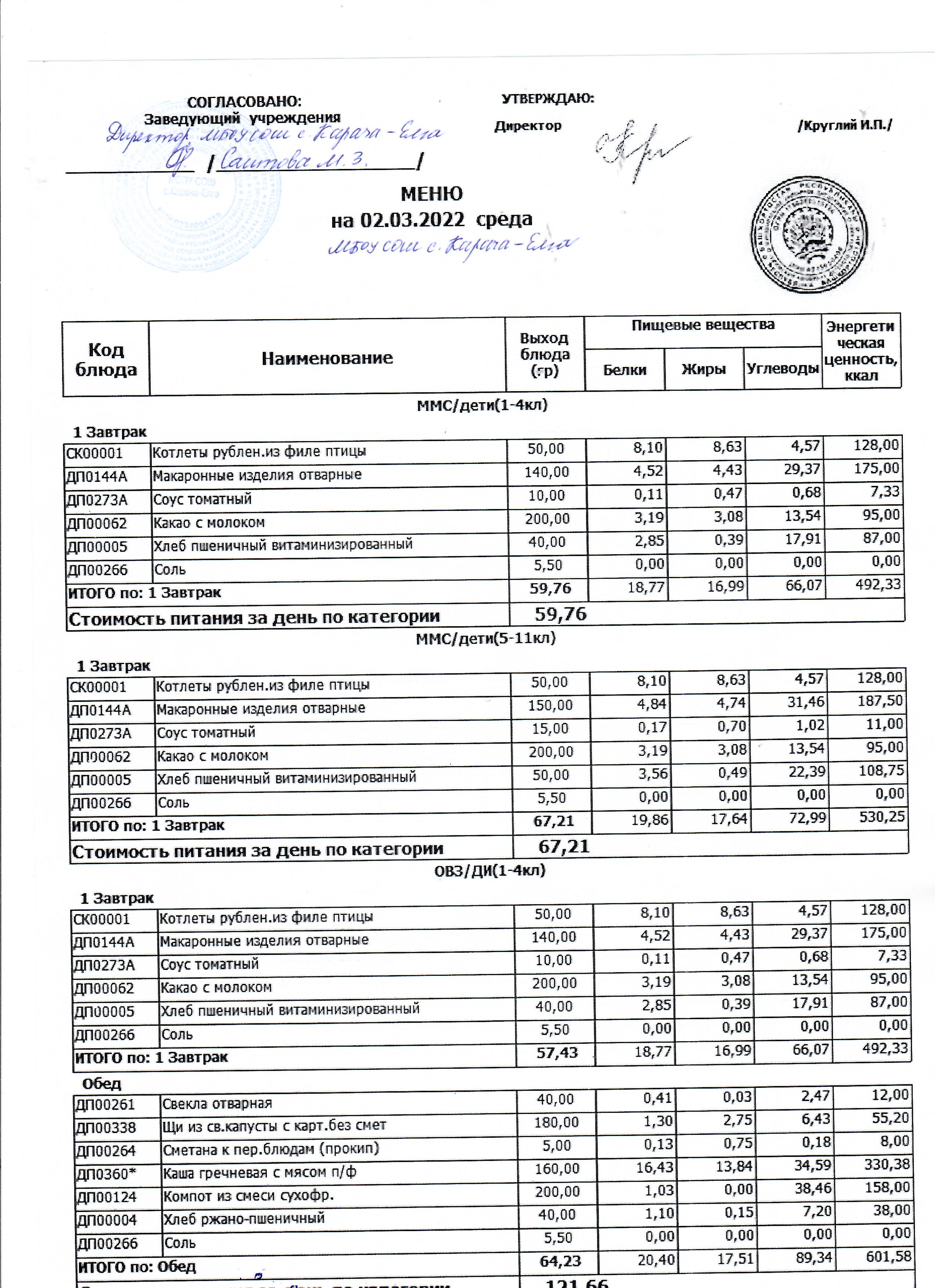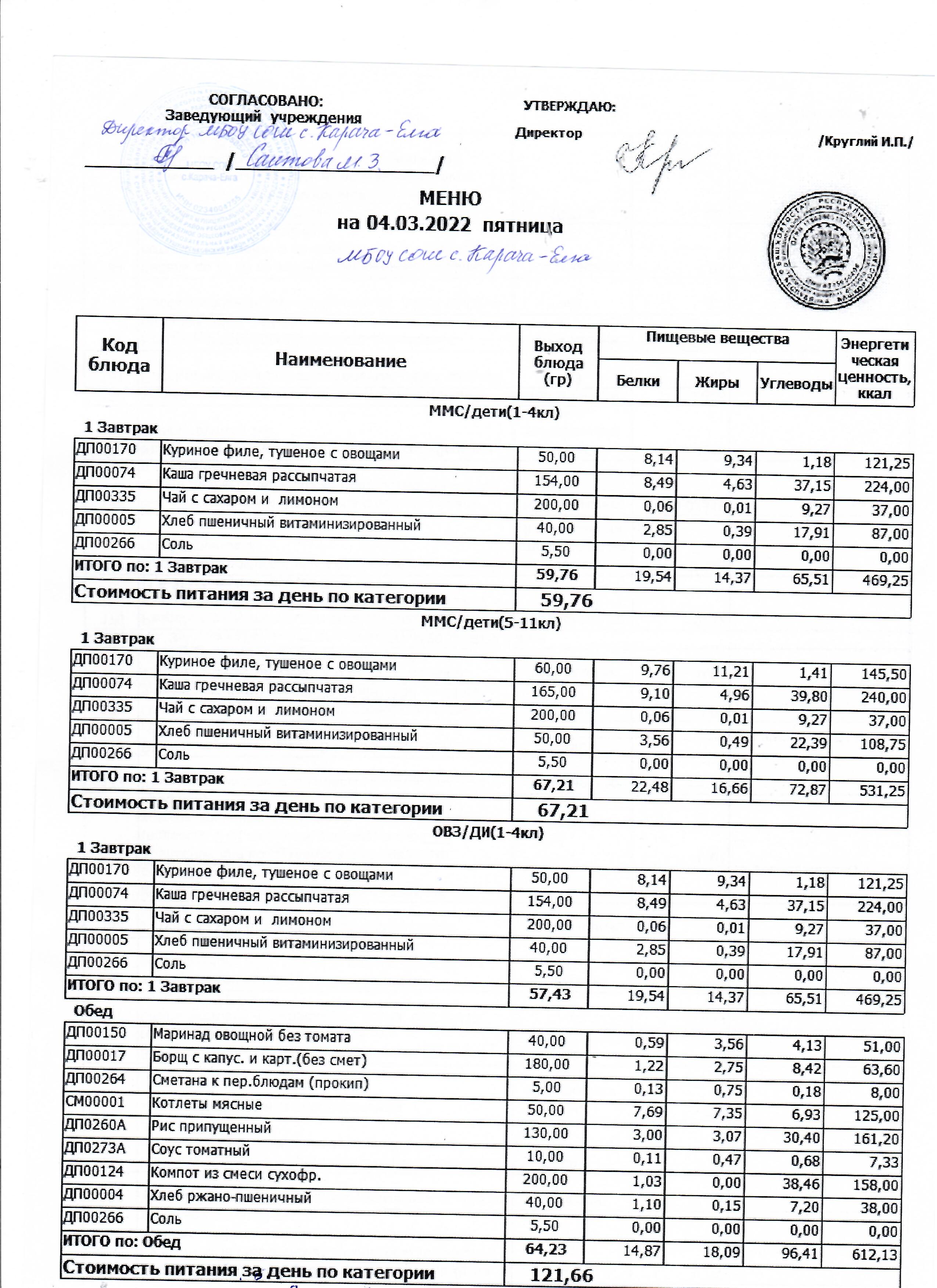 (меню на 04.03.2022 г.)