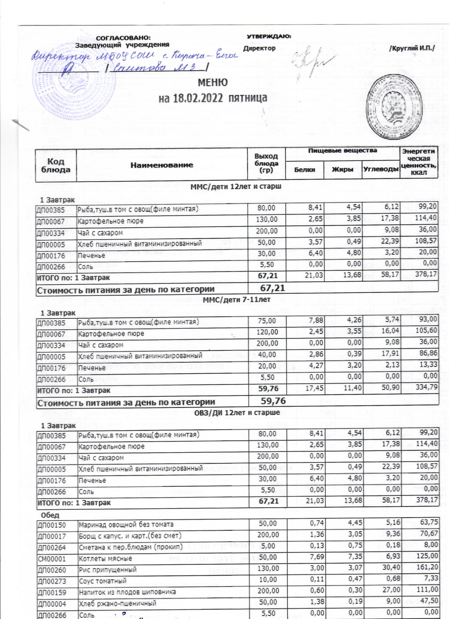 (меню на 18.02.2022 г)