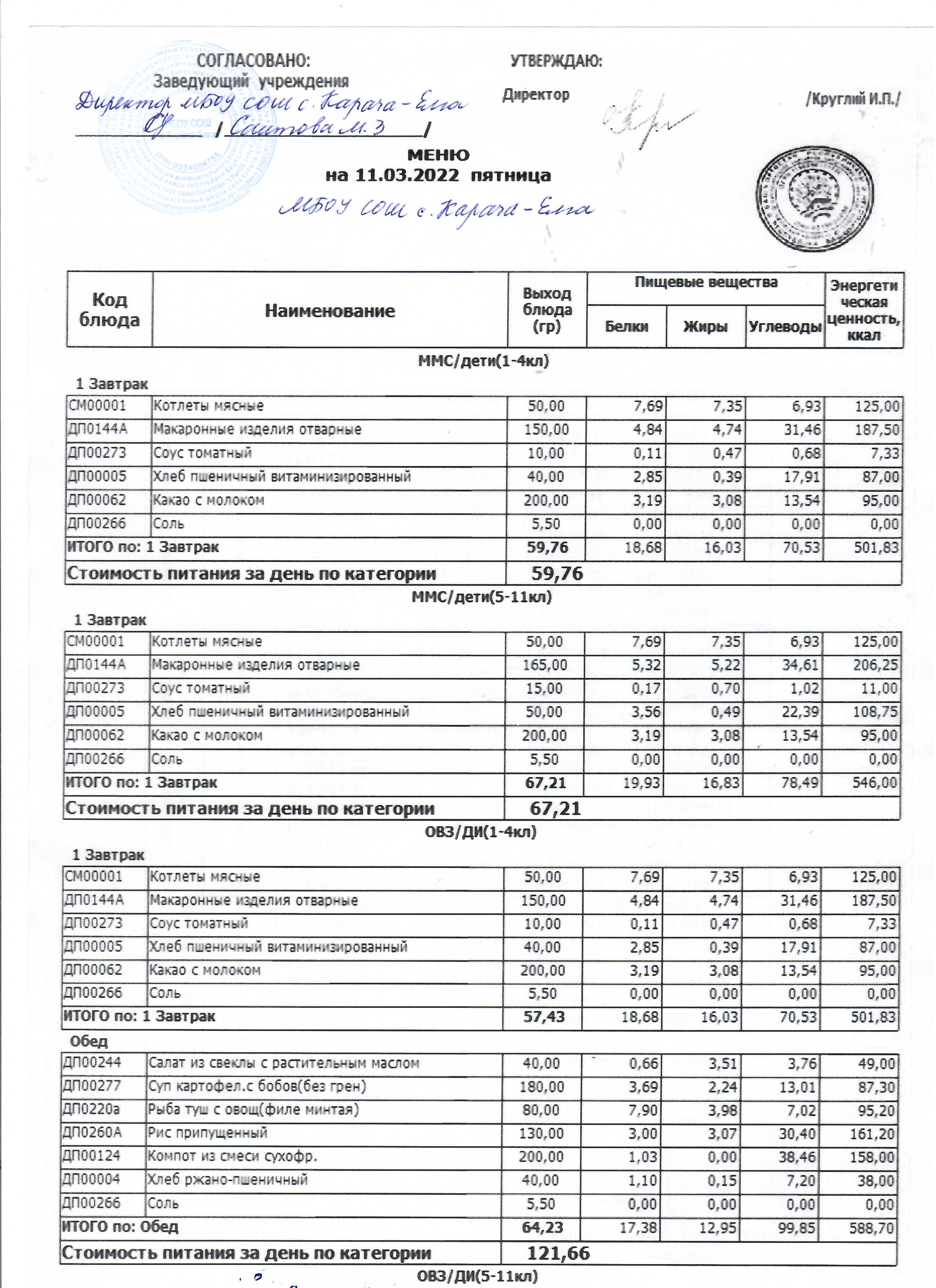 (меню на 11.03.2022 г)