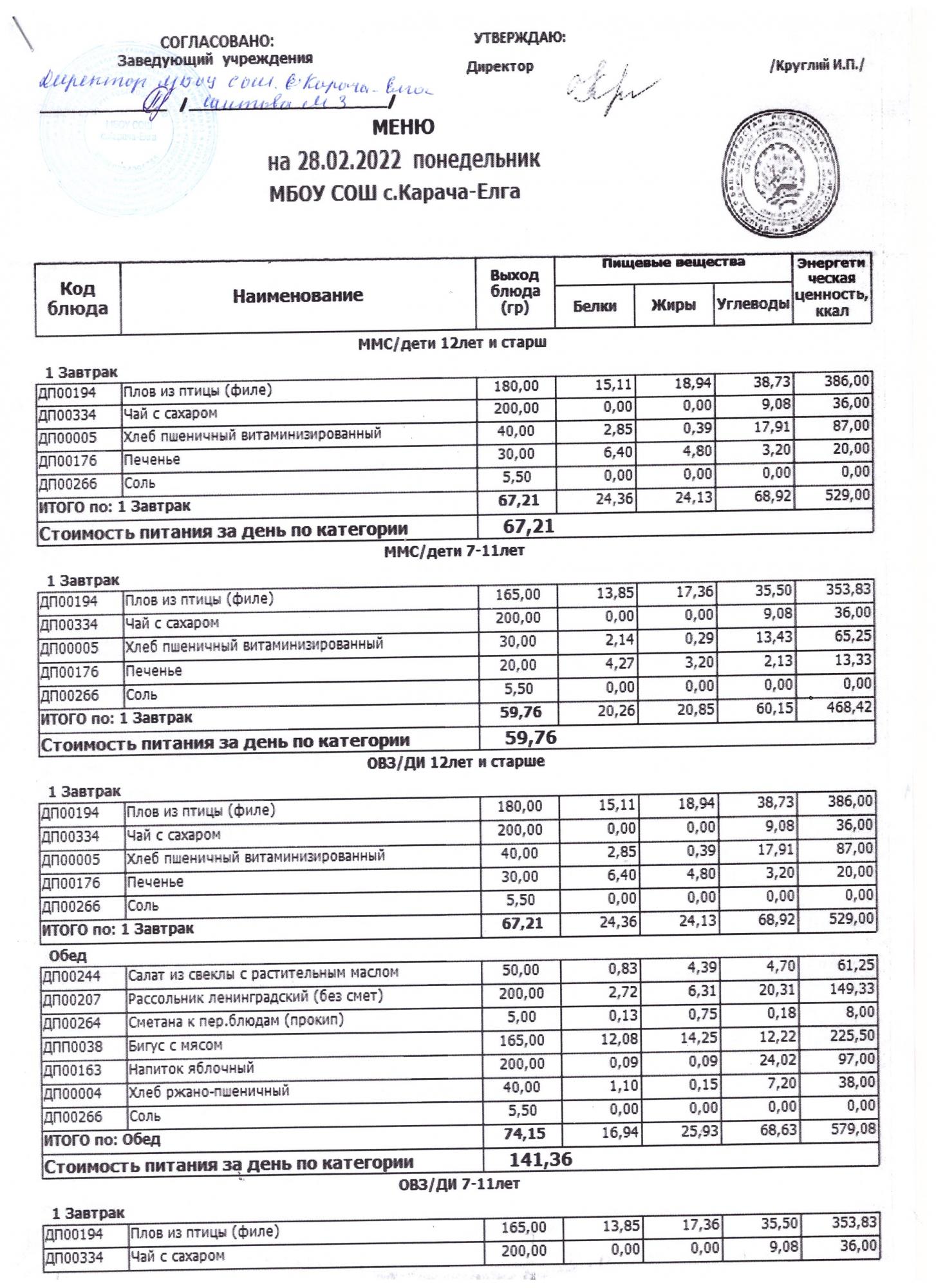 (меню на 28.02.2022 г)