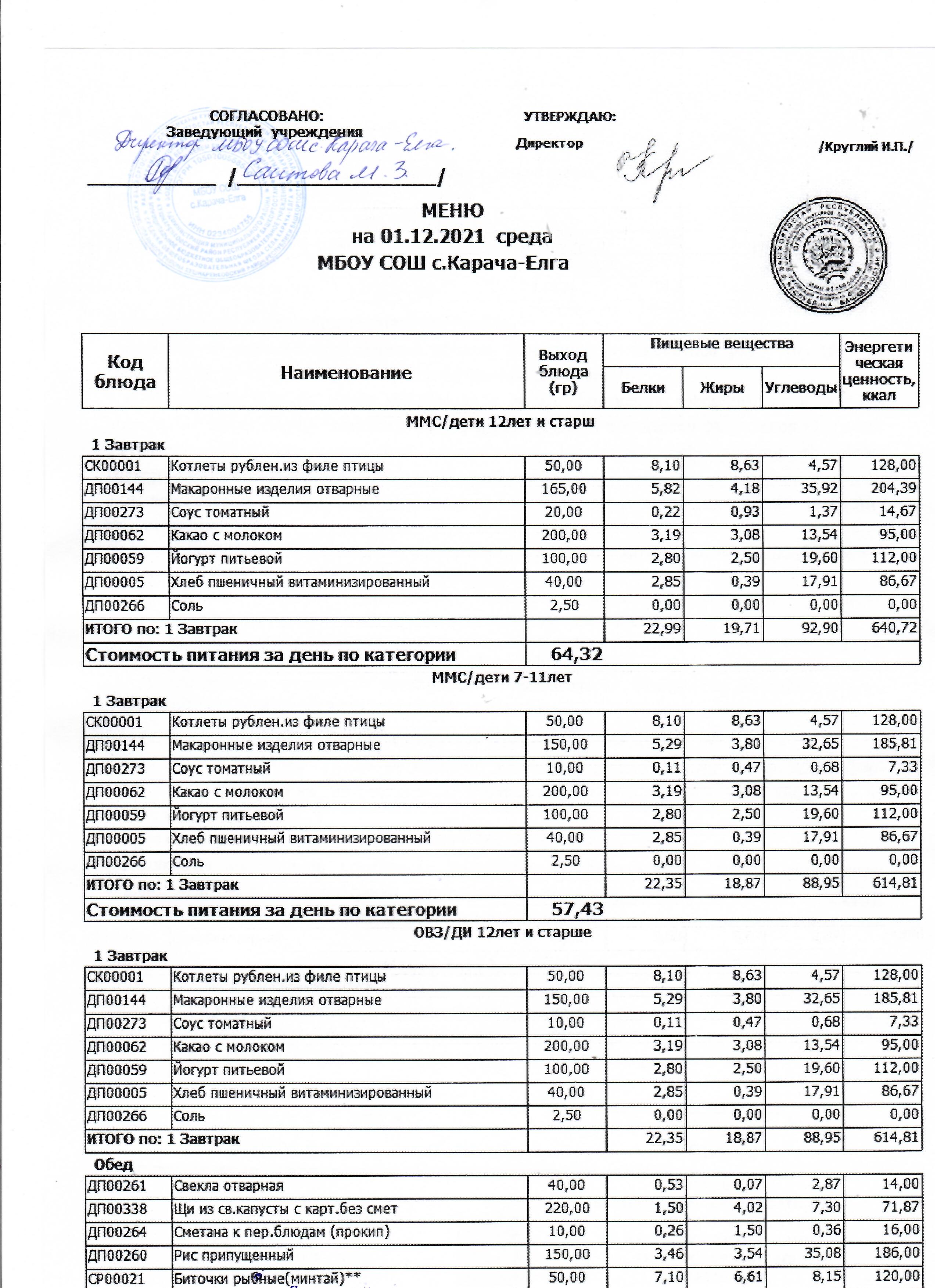 (Меню на 01.12.2021 г.)