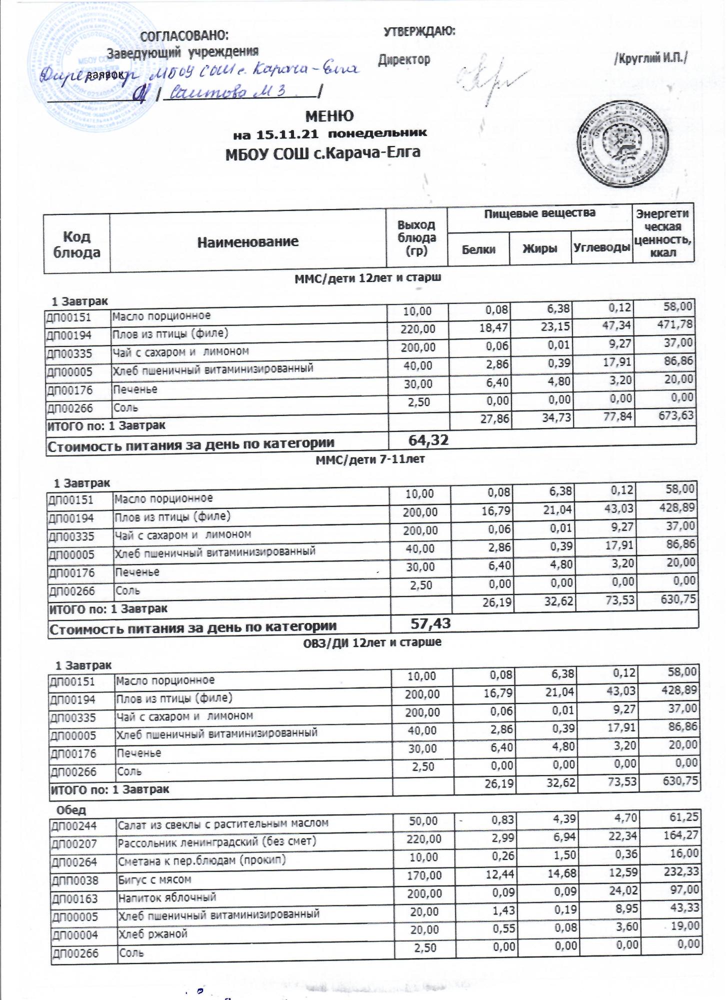 (меню на 15.11.2021 г)