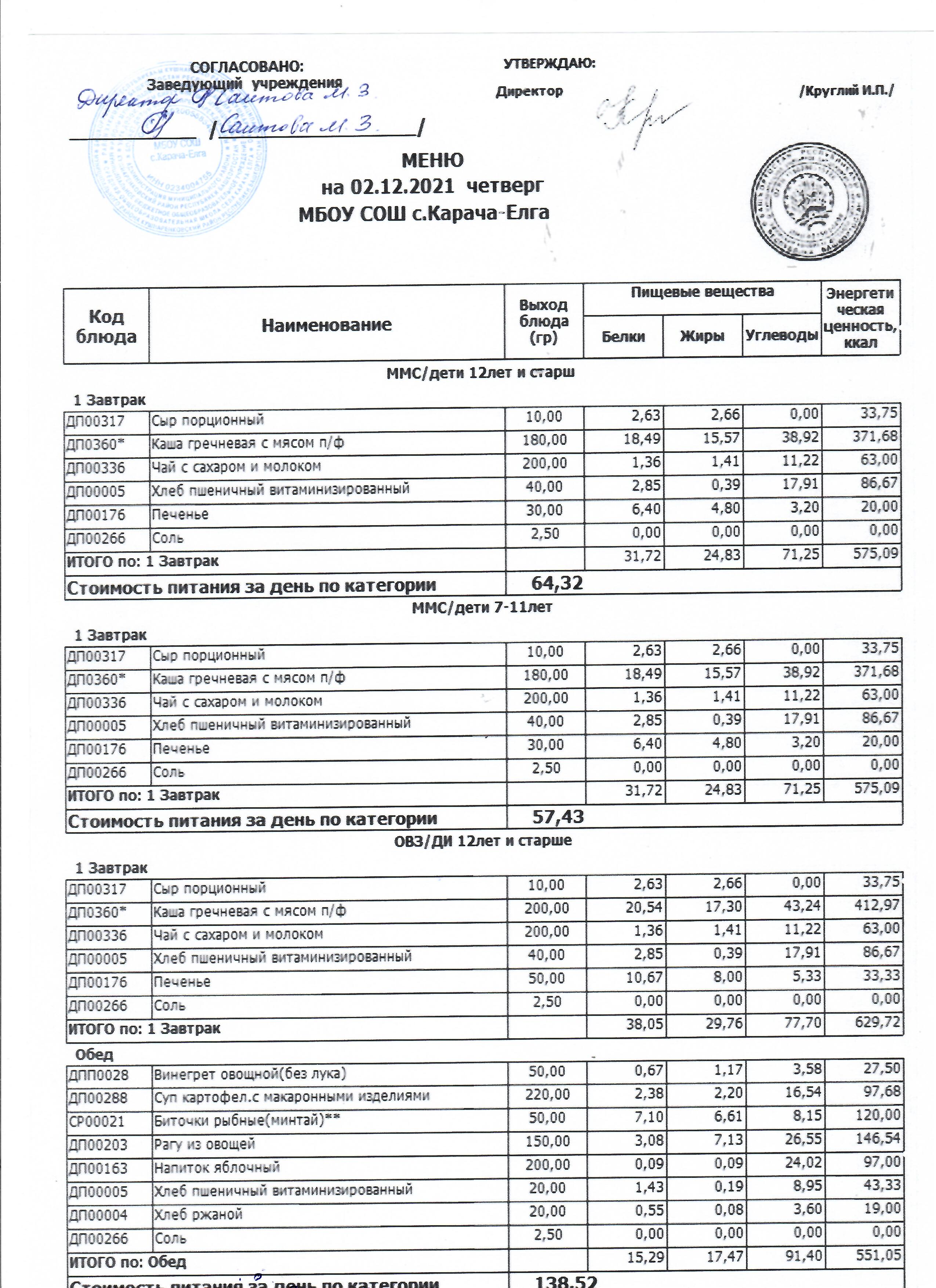 (Меню на 02.12.2021 г. )