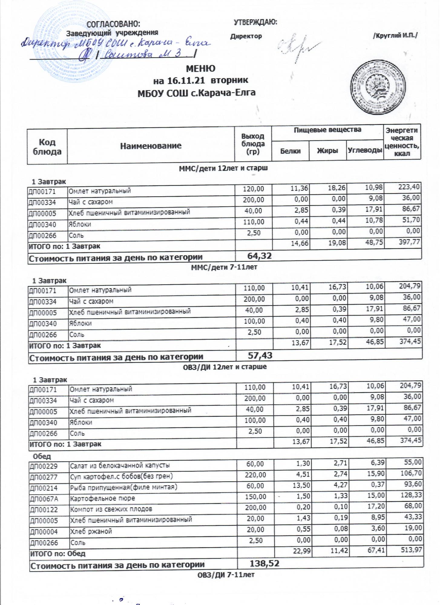 (меню на 16.11.2021 г)