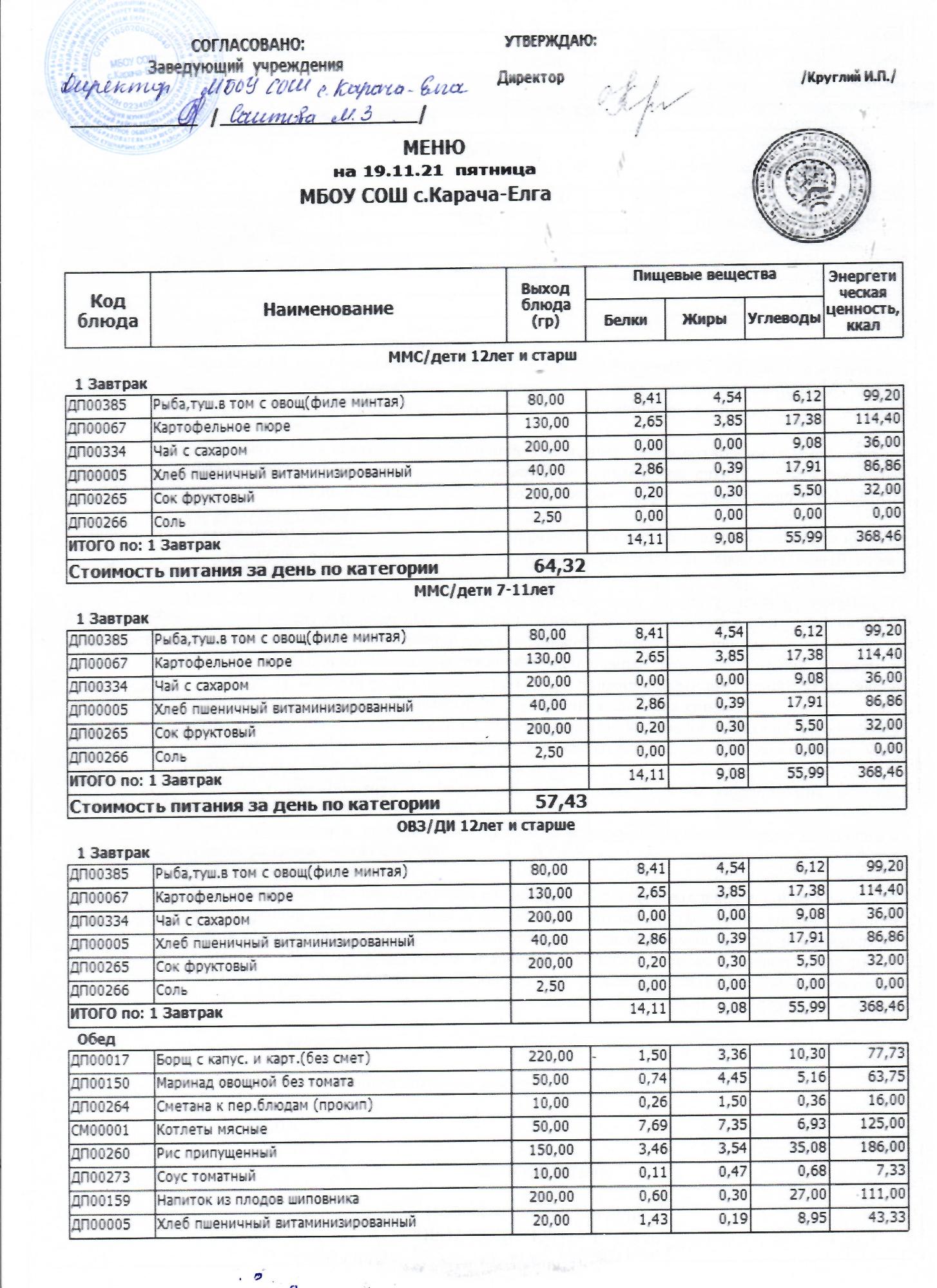 (меню на 19.11.2021 г)