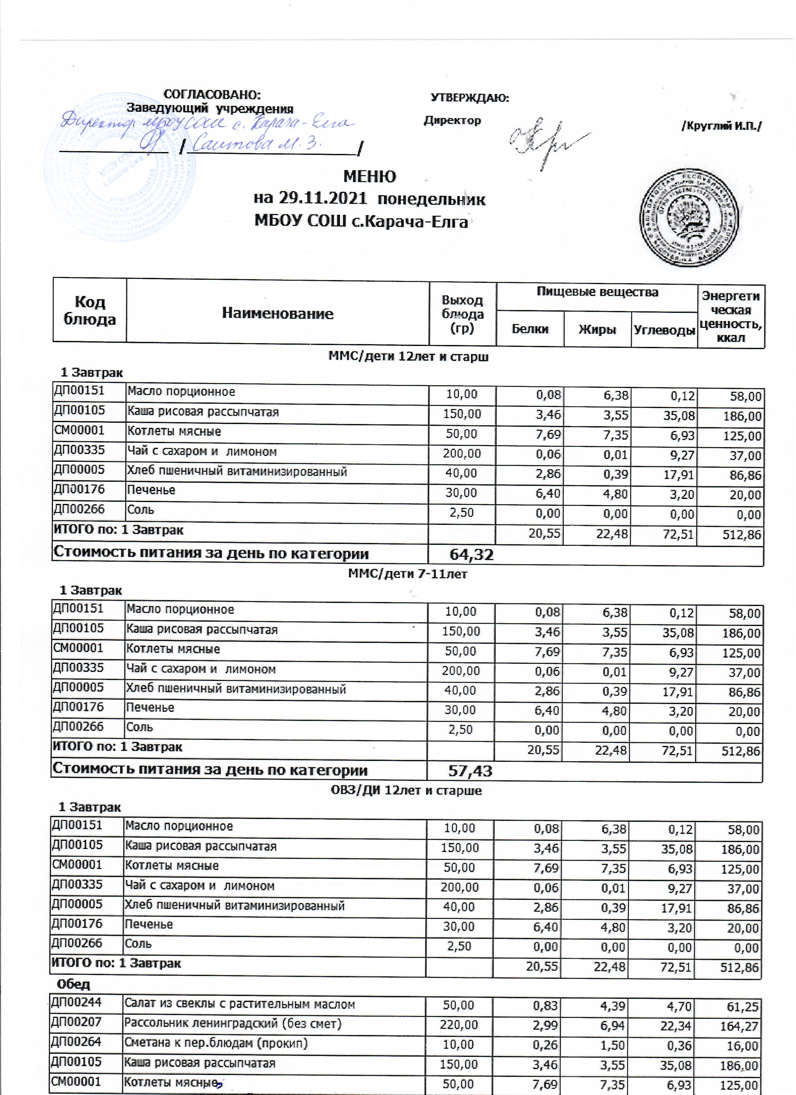 (меню на 29.11.2021 г)