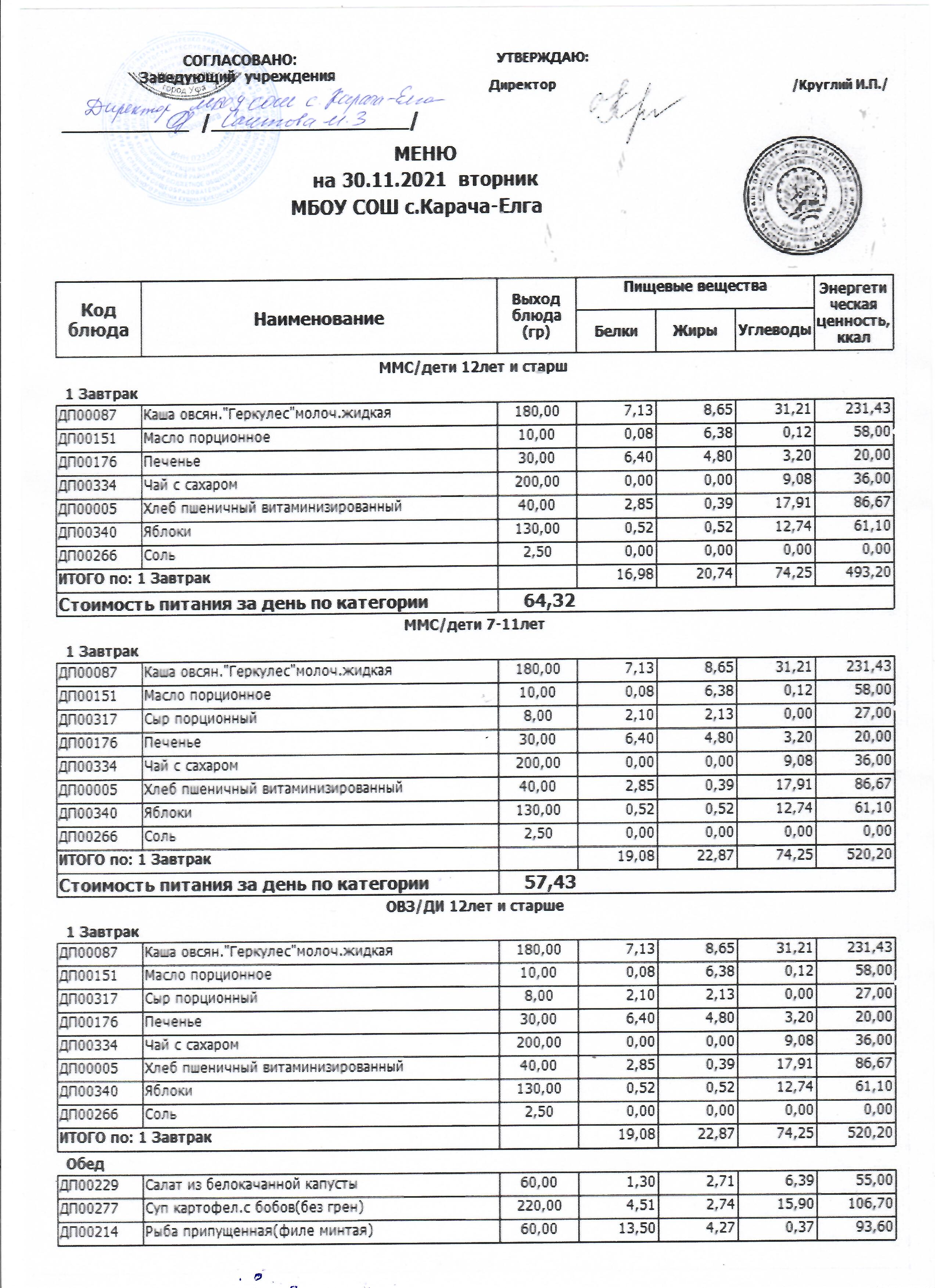 (Меню на 30.11.2021 г. )