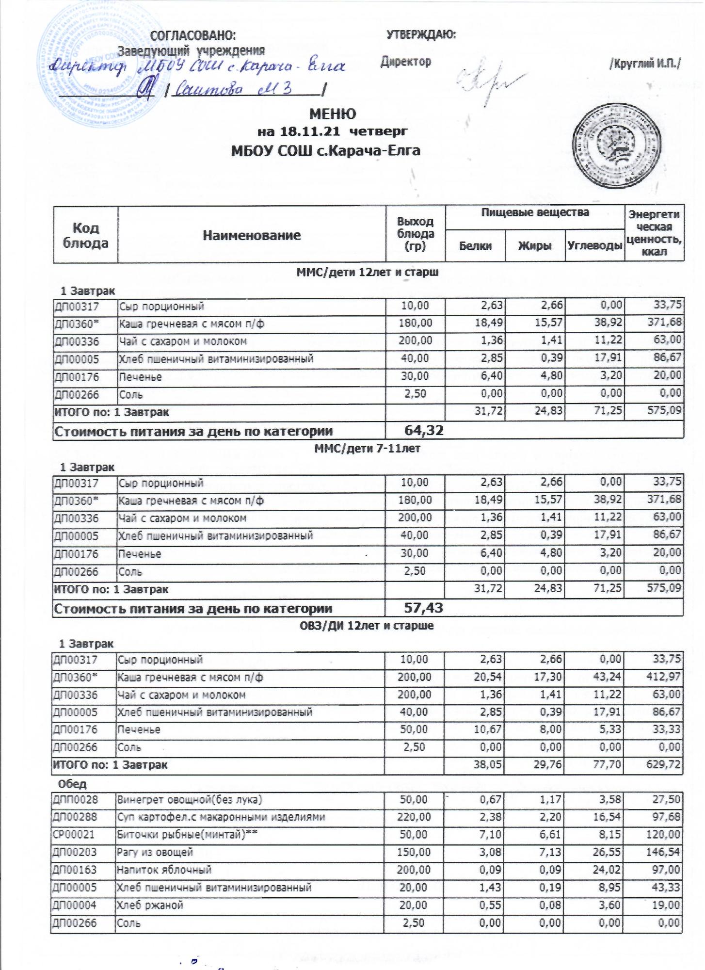 (меню на 18.11.2021 г)